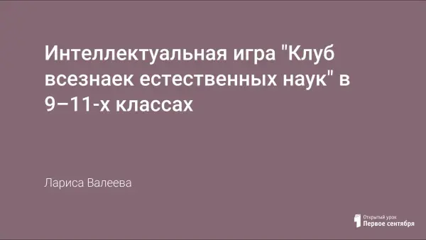 Эта игра проводится в рамках недели естественных наук. Конкурсы и вопросы подобраны с ориентацией на знание таких предметов, как математика, химия, физика, география, биология. В мероприятии участвуют 3 команды учащихся девятых, десятых, одиннадцатых классов. Команды смешанные, включающие по одному человеку от каждого класса. Остальные учащиеся каждого класса образуют группы поддержки.
