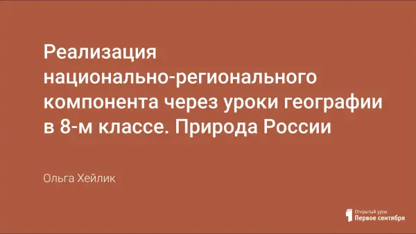В статье "Реализация национального регионального компонента через уроки географии в 8-м классе - Природа России" представлены 2 урока и практическая работа. Уроки воспитывают любовь к малой Родине, заинтересовывают изучением географии Челябинской области, развивают навыки работы с контурной картой, атласом, помогают понять закономерности размещения полезных ископаемых, знакомят с горными породами.