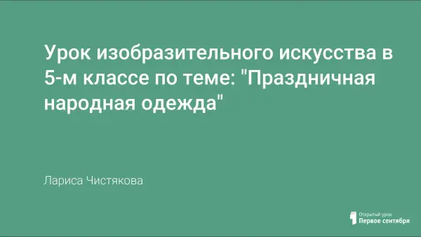 Урок изобразительного исскуства в 5-м классе знакомит учащихся с основами народного костюма, его традициями, символикой, учит детей быть внимательными к культуре своего народа, интересоваться его историей.