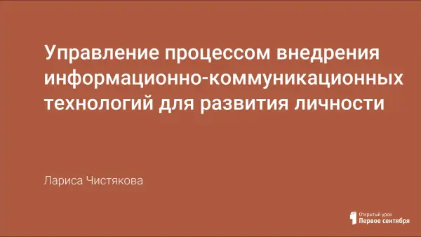 В статье рассмотрены основные формы и методы управленческой деятельности администрации и педагогического коллектива МОУ "СОШ № 107 г. Челябинска" по внедрению информационно-коммуникационных технологий в образовательный процесс школы, обоснована необходимость этой работы, приведены условия внедрения программ использования ИКТ-технологий для педагогов и учащихся, которые автор рассматривает в различных направлениях деятельности школы: системе научно-методической работы; использовании единых концептуальных подходов модели "Экология и диалектика" - принцип симметрии и асимметрии; построении траектории развития ученика.