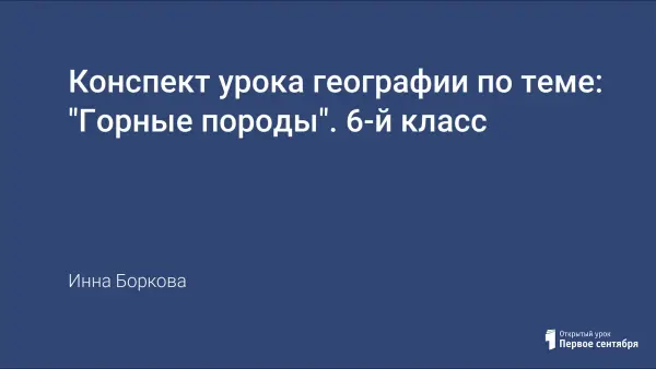 Предлагаемый урок из начального курса географии 6 содержит новый подход к изучению литологического состава литосферы. Ученикам предлагается несложная схема изучения любой горной породы, которая позволит им определить генетическую группу исследуемого образца. Школьникам в доступной форме подробно рассказывается о различных геодинамических процессах, в результате которых образуются различные горные породы. Ребёнку на уроке даётся исследовательское задание, выполнение которого ведёт его к небольшому научному открытию, отворяет путь в большую геологическую науку.