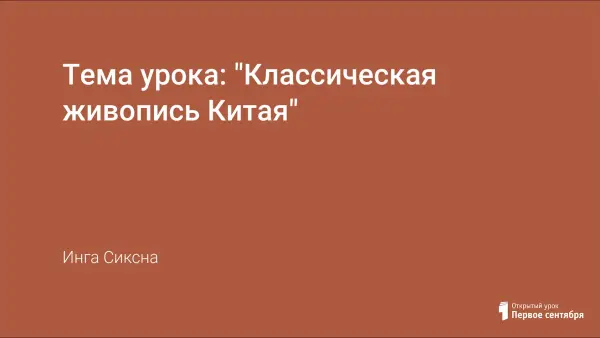 Урок знакомит учащихся с классической живописью Китая. Дает представление о жанрах китайской живописи, ее основных направлениях, стилях работы китайских мастеров. После чего учащиеся выполняют рисунок на тему выбранного жанра в традициях классической китайской живописи.