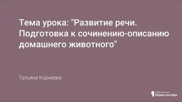 Урок развития речи включает в себя подготовку к сочинению-описанию кошки. Повторяются сведения о теме, идее, жанре сочинения, отмечаются языковые средства художественного стиля, отрабатывается композиция работы. Составляется план, проводится лексическая, орфографическая работа.