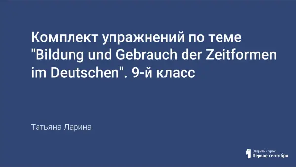 Цель урока: повторение и закрепление активной лексики по пройденным темам; а также совершенствование грамматического навыка по теме «Образование и употребление временных форм глаголов в немецком языке».