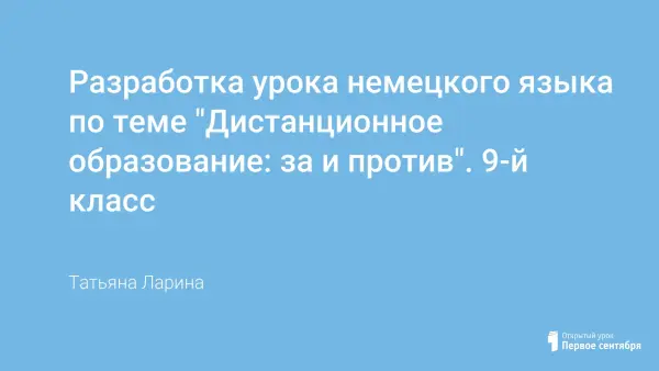 Данный урок разработан для учащихся 9-го класса, изучающих немецкий язык пятый год как второй иностранный (2 часа в неделю), и способствует подготовке к ГИА. Он включает в себя активизацию различных коммуникативных умений школьников: словообразование, чтение с последующими заданиями по тексту, ответы на вопросы на слух. В процессе урока учащиеся выходят на дискуссию по теме «Дистанционное обучение: за и против» с высказыванием своего мнения.