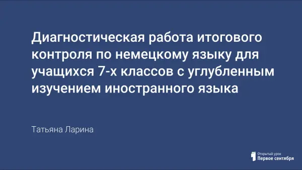Данная диагностическая работа подготовлена для учащихся 7-го класса, третий год изучающих немецкий язык как второй иностранный.