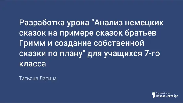 Данный урок разработан для учащихся 7-го класса, изучающих немецкий язык как второй иностранный с 5-го класса. Его цель – знакомство с немецкими сказками, их построением и особенностями, повышение мотивации к чтению, развитие аналитических и творческих способностей учащихся.