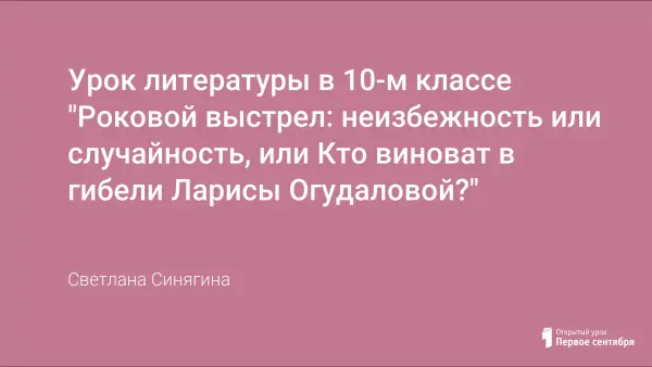Урок литературы в 10-м классе по драме А.Н. Островского "Бесприданница" решает проблемный вопрос: смерть Ларисы Огудаловой случайность или неизбежность?