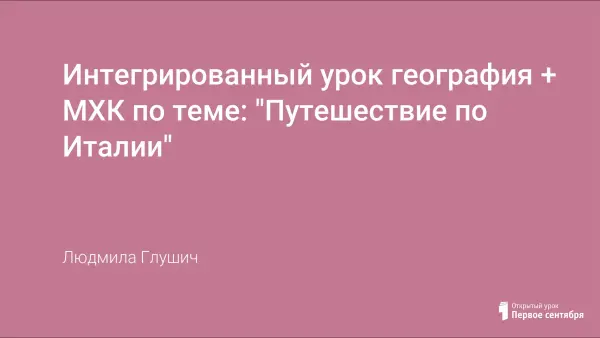 Интегрированный урок география + МХК по теме: "Путешествие по Италии"