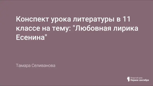 Разработка урока, направленного на показ динамики развития любовной лирики Есенина,