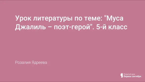 Биография татарского поэта Мусы Джалиля, который смысл всей своей жизни видел в служении народу, имеет большое воспитательное значение. На уроке учащиеся знакомятся с яркими страницами жизни поэта, читают его бессмертные стихи, учатся анализировать лирическое произведение, находить художественные средства выразительности, раскрывать идею стихотворения. Урок воспитывает в учащихся чувство гордости, патриотизма, чувство уважения к старшему поколению, чья юность совпала с грозными годами войны.