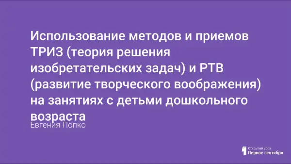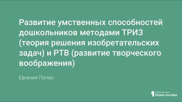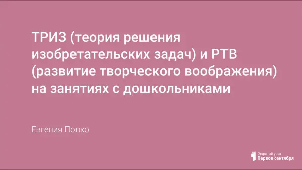 Использование на занятиях с дошкольниками методов и приемов ТРИЗ (теории решения изобретательских задач) и РТВ (развития творческого воображения) позволяет: активизировать познавательные и исследовательские способности; научить детей самостоятельно "добывать" знания; развивать творческие способности дошкольников.
