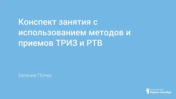 Современному обществу необходима педагогика творчества, где знания не передаются, а создаются в процессе познания и преобразования. Для эффективной деятельности в быстро меняющемся мире необходимо сформировать новый тип мышления, в котором гармонично сочетался бы логический и творческий компонент. Эти задачи по силе ТРИЗ и РТВ, позволяющие формировать навык познавательной, творческой и практической деятельности; развивать творческие способности; знакомить с основными понятиями РТВ – ТРИЗ – ТРТЛ.