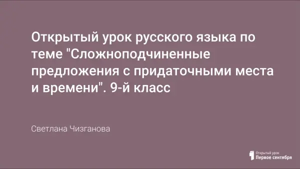 Урок русского языка на тему «Сложноподчинённые предложения с придаточными места и времени» для учащихся 9-х классов показывает отличительные особенности сложноподчинённых предложений с придаточными места и времени; формирует умение распознавать придаточные места и времени и отличать их от других видов придаточных предложений; воспитывает бережное отношение к слову и любовь к родному языку.
