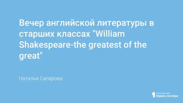 Сценарий вечера английской литературы в старших классах. Данное мероприятие знакомит учащихся с жизнью и творчеством В. Шекспира и направлено на развитие навыков устной речи и аудирования и поддержание интереса к предмету. Воспитывает уважение к культуре страны изучаемого языка.