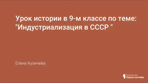 Урок истории в 9 классе "Индустриализация в СССР" построен в основном на практической работе учащихся со статистическими данными, общественно-политической литературой, что способствует развитию у школьников навыков самостоятельного анализа исторического материала, умения сопоставлять информацию разных источников, обосновывая своё отношение к изложенным в них фактам.