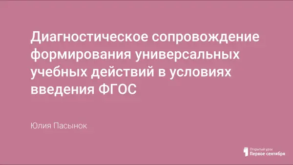 Федеральный государственный образовательный стандарт начального общего образования предлагает совокупность личностных, метапредметных и предметных результатов освоения программы. Цель: диагностика личностных и метапредметных результатов. Приведен пример диагностики для учащихся 1-х классов.
