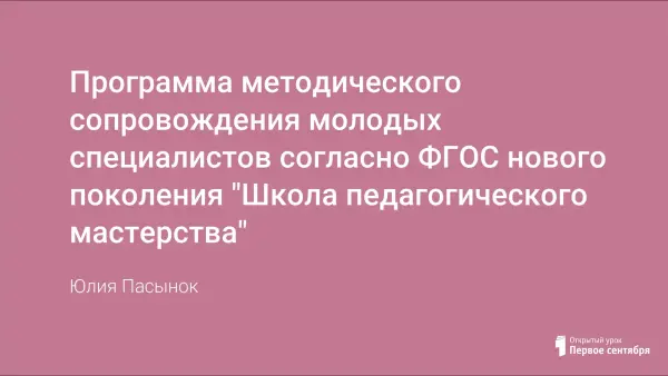 Сегодня школе нужны педагоги, владеющие компетентностью в информационной, исследовательской, проектной деятельности, понимающие и осознающие новую миссию учителя. Работа с молодыми специалистами – традиционно одна из самых важных составляющих методической работы школы. В статье представлена программа методического сопровождения молодых специалистов согласно ФГОС нового поколения.