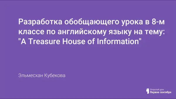 Разработка обобщающего урока в 8-м классе по английскому языку на тему: "A Treasure House of Information"