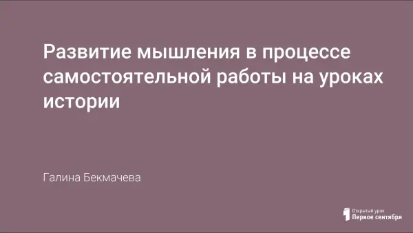 В современный период, когда увеличивается поток информации, очень важно научить самостоятельно мыслить, анализировать, делать выводы. Самостоятельная работа на уроках истории способствует активизации деятельности учащихся на уроке, предполагает максимальную индивидуализацию каждого, отвечает детской любознательности и стремлению. Практика показывает, что наиболее успешно сформировать умение самостоятельно накапливать знания, действовать не по шаблону можно только в практической деятельности.