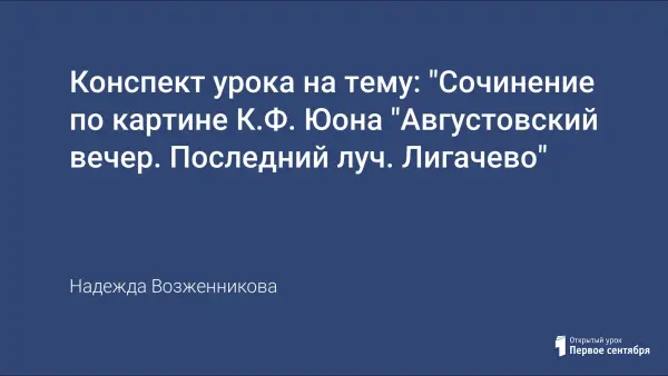 Конспект урока на тему: "Сочинение по картине К.Ф. Юона "Августовский вечер. Последний луч. Лигачево"