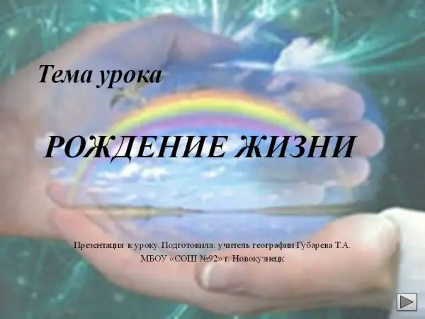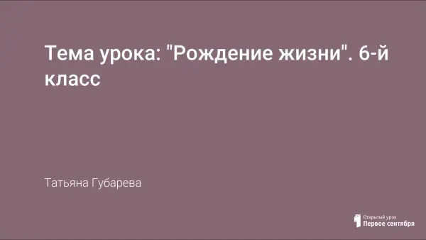 Урок географии по учебнику под редакцией В.А. Кошевого. В этом учебнике изучение оболочек Земли происходит отдельными темами: Мир камня, Мир воздуха, Мир воды, Мир живой природы. Тема «Рождение жизни» начинает изучение раздела «Мир живой природы». Основные вопросы: Когда появилась жизнь на Земле? Какие этапы прошло развитие жизни на Земле? Где и как появился самый первый организм на Земле?