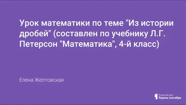 На уроке дети знакомятся с историческими сведениями о дробях, пробуют силы в решении старинных задач с дробями, развивают речь, логику, познавательные интересы, а также работают в группах.