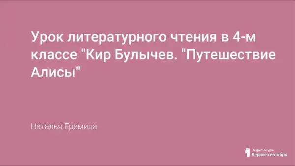 Урок литературного чтения в 4-м классе по теме «Кир Булычев. "Путешествие Алисы» знакомит учащихся с жанром фантастической повести, творчеством Кира Булычева. В уроке используется презентация. Урок способствует формированию различных видов деятельности учащихся: анализ, планирование, обобщение, систематизация, работа в группе.
