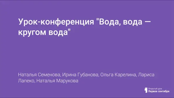 Конференция носит межпредметный характер. Вода представлена с точки зрения физики, химии и биологии. Рассмотрены особенности строения молекулы воды, аномалии свойств. Биологами раскрыта значимость воды в живом организме. Экологи подняли вопрос о состоянии водных ресурсов в городе Нижний Тагил. Демонстрировались опыты Плато, поверхностного натяжения, способы очистки воды. Итог конференции – осознание учащимися сохранения водных богатств Земли, предложены меры экономии пресной воды в быту.