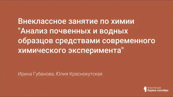 Представлен конспект внеклассного мероприятие по химии: "Анализ почвенных и водных образцов средствами современного химического эксперимента".