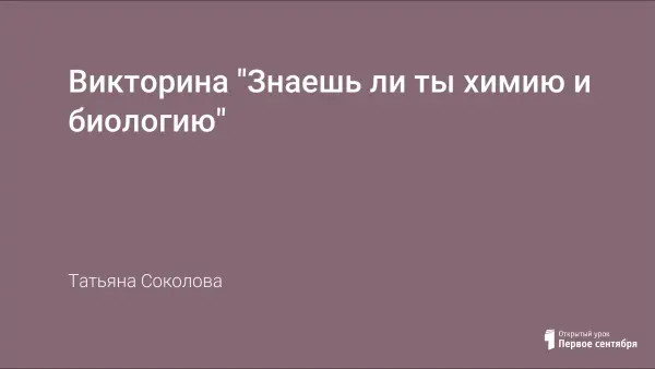 Предлагается межпредметная викторина по химии и биологии. Викторина содержит 27 вопросов, может быть использована не только на уроках, но и во внеклассной работе (например, во время проведения предметных недель в школе). Данная викторина является продолжением серии межпредметных викторин естественных наук.