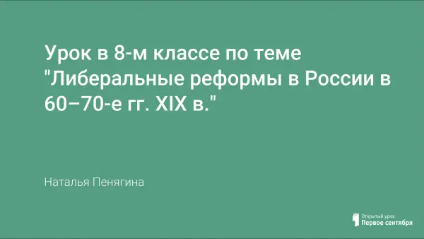<p>Представлен урок с элементами лабораторной работы. На уроке широко используются извлечения из Городового положения (1870 г.), Положения о губернских и уездных земских учреждениях (1864 г.), Учреждения судебных установлений (1864 г.), адаптированные для восприятия учащимися 8 класса. Анализируя источники, учащиеся формируют своё отношение к реформаторской деятельности Александра II.</p>