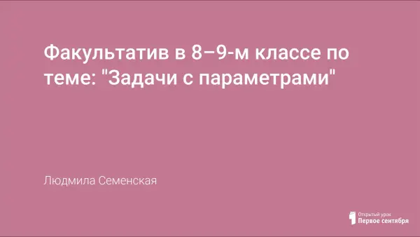 Каждый институт предъявляет свои требования к уровню математической подготовки будущего студента. При подготовке к сдаче выпускных экзаменов и вступительным экзаменам в Вузы учащиеся встречаются с очень сложными задачами. Эти задачи позволяют проверить знание основных разделов школьной математики, уровень математического и логического мышления, первоначальные навыки исследовательской деятельности. Такой диагностической ценностью в полной мере обладают задачи с параметрами. На уроках решению задач с параметрами уделяется очень мало времени, поэтому к "встрече" с ними надо готовится специально. Чтобы учащиеся успешно овладели методами решения таких задач, необходимо вести факультативный курс "Решение задач с параметрами" не менее 3 - 4 лет. Одной из форм проверки умения решать эти задачи является математический бой.