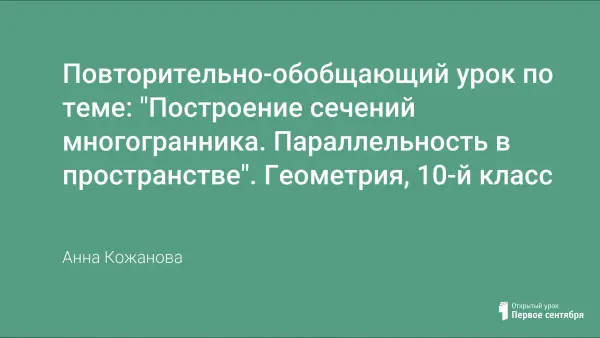 Конспект урока повторения и обобщения знаний, умений и навыков построения сечений. Преподавание ведется по учебному комплекту В.Н. Литвиненко Геометрия 10. Урок давался в рамках районного семинара-практикума по теме "Система работы учителей математики по проблемам активизации и интенсификации деятельности учащихся на уроке и во внеурочной деятельности"