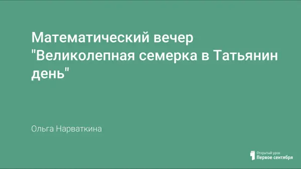 Татьянин день – праздник торжества знаний. Вероятно, это единственный в истории случай, когда на один и тот же день претендуют и служители церкви, и студенчество, причем каждая сторона понимает праздник на свой манер манер. Умение заинтересовать математикой – дело не простое. Одним из приемов активизации познавательной деятельности обучающихся является использование исторических данных на математическом вечере.