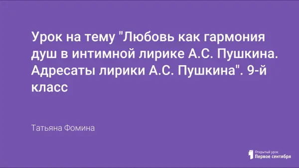 Урок предполагает знакомство обучающихся с любовной лирикой Пушкина, ставит цель – показать её своеобразие и неповторимость. Использование современных средств обучения позволяет воспитывать интерес к изучаемой теме, пробуждать в учащихся эстетические переживания, связанные с восприятием поэзии, музыки.