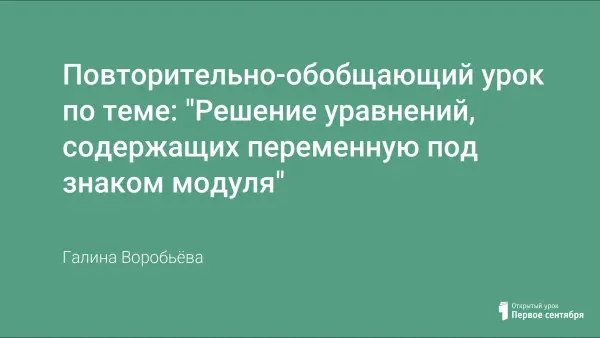 Представлен повторительно - обобщающий урок математики в 6-м классе по теме: " Решение уравнений, содержащих переменную под знаком модуля ", на котором использованы различные формы учебной деятельности. Изучая тему: "Модуль числа", (6 класс, учебник авторов: Виленкин Н.Я., Жохов В.И., Чесноков А.С., Шварцбурд С.И.) я не ограничиваюсь материалом пункта 28, а углубляю и расширяю знания учащихся по данной теме. На открытом уроке я делилась с учителями опытом своей работы.