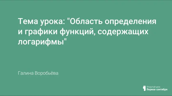 Данный урок провожу в 11-м классе после изучения темы "Логарифмическая функция". На этом уроке учащиеся совершенствуют умение находить область определения функции, повышают навыки преобразования выражений, содержащих логарифмы, учатся действовать в нестандартных ситуациях. После этого урока учащимся легче работать с темой "Решение логарифмических уравнений и неравенств". На уроке использую различные формы и методы обучения.