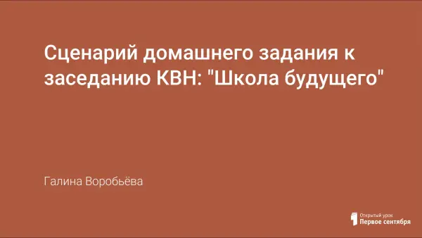 Очень часто при проведении математических КВН учащиеся готовят домашние задания на определенные темы. Предлагается свой вариант домашнего задания на тему "Школа будущего". В небольшой сценке, которую разыгрывали учащиеся, говорится о том, какой они увидели свою школу и урок математики в далеком будущем.