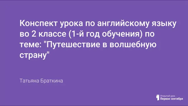 Конспект урока по английскому языку во 2 классе (1-й год обучения) по теме: "Путешествие в волшебную страну"