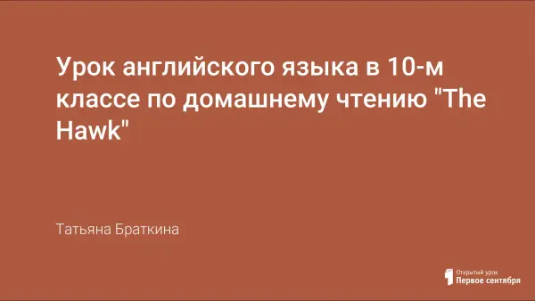 Урок английского языка в 10-м классе по домашнему чтению "The Hawk"