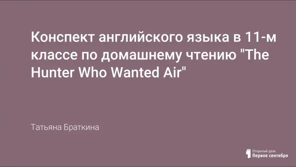 Конспект английского языка в 11-м классе по домашнему чтению "The Hunter Who Wanted Air"