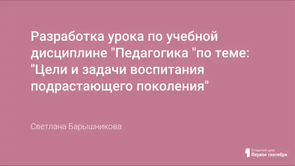 Вопрос о цели и задачах воспитания является основополагающим в педагогике и требует личностного осмысления и осознания каждым педагогом. Поэтому изучение данной темы в педагогическом колледже предлагается организовывать в виде урока-исследования, помогающего студентам определить смысл и значение цели воспитания через коллективную мыследеятельность.