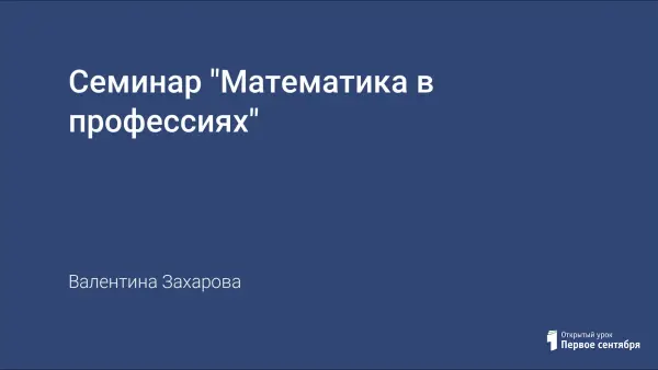 Урок-семинар "Математика в профессиях" рассчитан на учащихся 7-9 классов. В решениях задач на проценты рассматривается применение математики в некоторых профессиях.