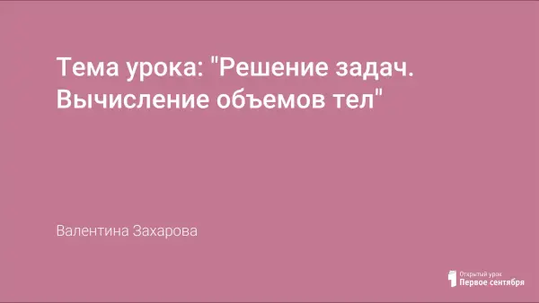 Цель урока: отработка практических умений и навыков вычисления объемов тел; развитие операционного мышления, направленного на выбор оптимальных решений; развитие у учащихся умения излагать мысли, делать выводы.