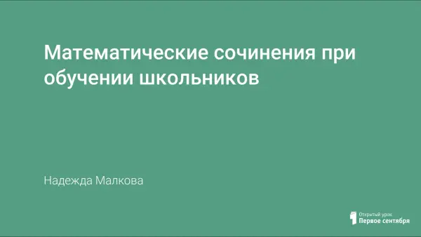 Математическое сочинение – это не литературная обработка изученного математического материала. Учитель математики редко использует эту форму работы. На наш взгляд, причина отказа от этой формы работы в неразработанности методики его проведения. В литературе фактически не имеется описания такой работы. Основы успешного выполнения такого задания закладываются при подготовке к изучению темы.