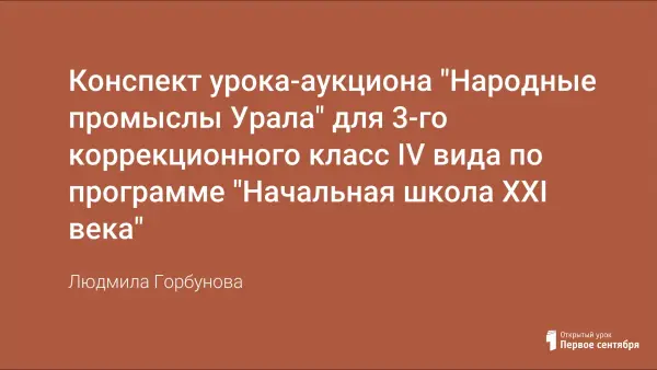Конспект урока-аукциона по окружающему миру "Народные промыслы Урала" для 3-го коррекционного класса IV вида по программе "Начальная школа XXI века". Содержание урока основано на материале по краеведению.