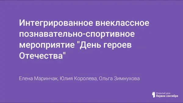 Познавательно-спортивное мероприятие проводится в два этапа. В первой части мероприятия учитель знакомит ребят 4–6-х классов с историей праздника, рассказывает о героях России. Второй этап праздника проходит в спортивном зале школы. Цель мероприятия: развитие творческих способностей учащихся, совершенствование двигательных умений и навыков, расширение знаний учащихся в области истории России, истории Кольского Заполярья, воспитание патриотизма.