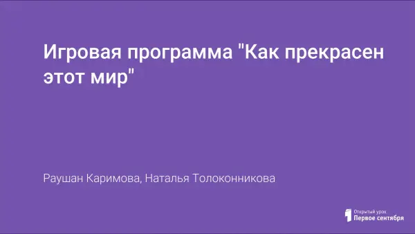 Накануне игры во время походов инструктора показывают и рассказывают ребятам об особенностях флоры родного края, приводят занимательные факты, связанные с растительным миром заповедника, где расположен наш городок. Игра "Как прекрасен этот мир" даёт возможность детям вспомнить услышанное, почувствовать красоту родной природы и понять, что от их отношения зависит, сможем ли мы сохранить для потомков всю прелесть этого мира.