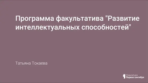 Для преодоления этих трудностей мной создан факультативный курс для 5-го класса "Развитие интеллектуальных способностей".